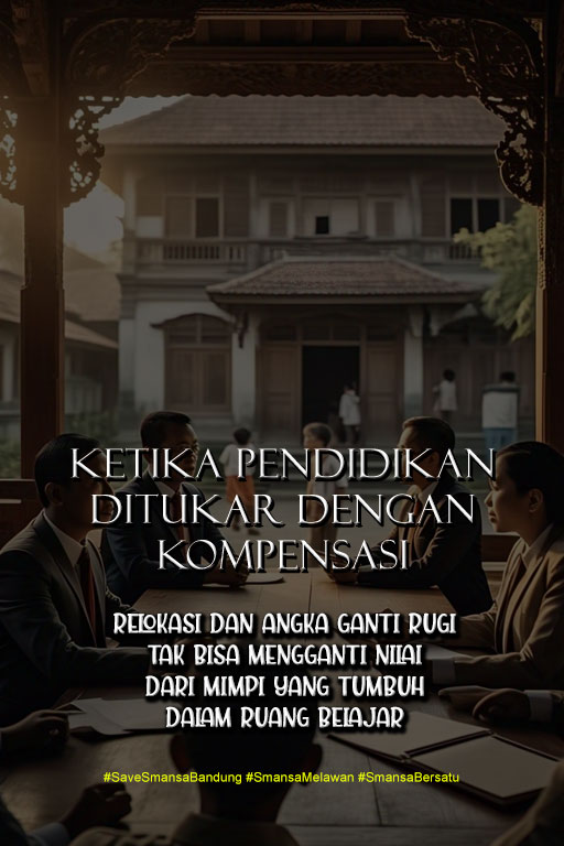 Dalam beberapa pernyataan dan respons publik atas konflik tanah SMAN 1 Bandung, sering muncul narasi relokasi atau kompensasi lahan sebagai solusi. Namun tidak pernah ada studi sosiologis atau historis yang mempertimbangkan dampak pemindahan ini terhadap nilai memori kolektif, identitas ruang belajar, dan trauma kultural yang dapat ditimbulkan.